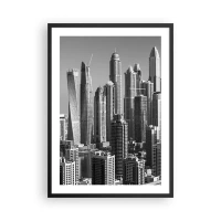 Plakat w czarnej ramie - Panorama miasta z nowoczesnymi drapaczami chmur - 50x70cm - Miasto nad pustynią - Nowoczesna dekoracja ścienna do salonu i sypialni ARTTOR