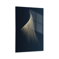 Obraz na szkle - Delikatna linia przypominająca pióro na granatowym tle - 70x100cm - Jak anioła włos - Nowoczesna dekoracja ścienna do salonu i sypialni ARTTOR