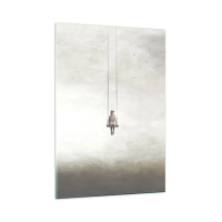 Obraz na szkle - Postać na huśtawce zawieszonej w przestrzeni - 80x120cm - Dziecko w nas - Nowoczesna dekoracja ścienna do salonu i sypialni ARTTOR
