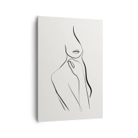Obraz na płótnie - Minimalistyczny szkic sylwetki kobiety na jasnym tle - 70x100cm - Fala melancholii - Nowoczesna dekoracja ścienna do salonu i sypialni ARTTOR