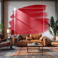 Fototapeta Standard Eco - Czerwony pociągnięcie pędzla na białym tle w artystycznej kompozycji - 100x70cm - Poza ramą - Nowoczesna dekoracja ścienna do salonu i sypialni ARTTOR