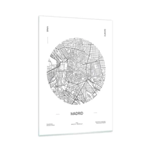 Obraz na szkle - Mapa Madrytu w minimalistycznym, czarno-białym stylu - 80x120cm - Anatomia Madrytu - Nowoczesna dekoracja ścienna do salonu i sypialni ARTTOR