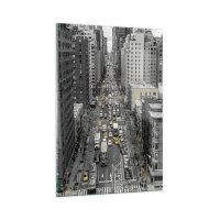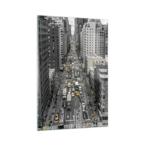 Obraz na szkle - Panorama ruchliwej ulicy Nowego Jorku z żółtymi taksówkami - 70x100cm - Życie Nowego Yorku - Nowoczesna dekoracja ścienna do salonu i sypialni ARTTOR