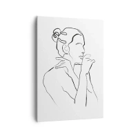 Obraz na płótnie - Minimalistyczna linia konturowa kobiecej sylwetki na białym tle - 50x70cm - Akt: zmysłowe misterium - Nowoczesna dekoracja ścienna do salonu, kuchni i sypialni ARTTOR