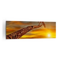 Obraz na płótnie - Palma na plaży o zachodzie słońca z widokiem na morze - 160x50cm - Egzotyczne wakacje, karaibska przygoda - Nowoczesna dekoracja ścienna do salonu i sypialni ARTTOR