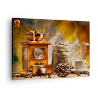 Fototapeta Premium Canvas - Chrzęst ziaren, terkot młynka - Gastronomia, Kawa, Młynek Do Kawy - 150x105 cm