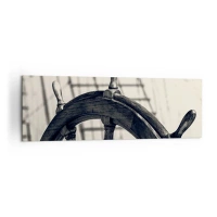 Obraz na płótnie - Ster żeglarski w stylu retro na tle statku - 160x50cm - Morskie opowieści - Nowoczesna dekoracja ścienna do salonu i sypialni ARTTOR
