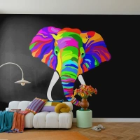 Fototapeta Samoprzylepna Deluxe Sticker - Słoń, który kochał kąpać się w tęczy - Zwierzęta, Słoń, Kolorowy Obraz - 400x280 cm
