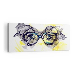 Obraz na płótnie - Artystyczna grafika okularów z wyrazistymi oczami - 120x50cm - Przez błękitne okulary - Nowoczesna dekoracja ścienna do salonu i sypialni ARTTOR