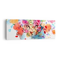 Obraz na płótnie - Abstrakcyjny portret lamparta w intensywnych kolorach - 140x50cm - Piękna i bestia - Nowoczesna dekoracja ścienna do salonu i sypialni ARTTOR
