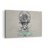 Obraz na płótnie - Geometria jelenia z napisem Wild Life w stylu vintage - 120x80cm - Widzenie św. Hubertusa - Nowoczesna dekoracja ścienna do salonu, kuchni i sypialni ARTTOR