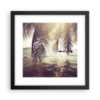 Zegar ścienny - Palma z huśtawką nad wodą w świetle słońca - 30x30cm - Można bujać w obłokach do woli - Nowoczesna dekoracja ścienna do salonu i sypialni ARTTOR