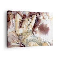 Obraz na płótnie - Kobieta w artystycznym akwarelowym stylu z brązowym tłem - 70x50cm - W nastroju lila - Nowoczesna dekoracja ścienna do salonu i sypialni ARTTOR