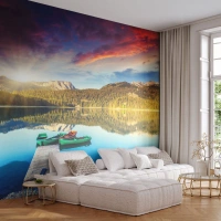 Fototapeta Samoprzylepna Deluxe Sticker - Nad wodą gładką jak lustro - Krajobraz, Góry, Las - 400x280 cm
