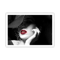 Plakat w czarnej ramie - Czarno-biały portret kobiety z czerwonymi ustami - 100x70cm - Studium w szkarłacie - Nowoczesna dekoracja ścienna do salonu i sypialni ARTTOR
