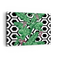 Obraz na płótnie - Tropikalne liście na geometrycznym tle - 120x80cm - Kompozycja symetryczna z natury - Nowoczesna dekoracja ścienna do salonu, kuchni i sypialni ARTTOR