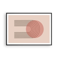 Plakat w czarnej ramie - Abstrakcyjny motyw z różowym okręgiem i liniami - 100x70cm - Nieodparte przyciąganie - Nowoczesna dekoracja ścienna do salonu i sypialni ARTTOR