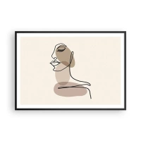 Plakat w czarnej ramie - Kobiecy profil w minimalistycznym stylu line art - 100x70cm - Pewna linia piękna - Nowoczesna dekoracja ścienna do salonu i sypialni ARTTOR