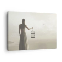 Fototapeta Premium Canvas - Bądź wolna - Kobieta, Klatka Dla Ptaka, Ptak - 200x140 cm