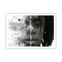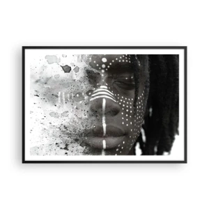 Plakat w czarnej ramie - Artystyczny portret twarzy z abstrakcyjnymi białymi wzorami - 100x70cm - Odkryj pierwotnego ducha - Nowoczesna dekoracja ścienna do salonu i sypialni ARTTOR