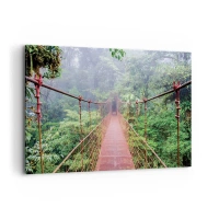 Obraz na płótnie - Most wiszący w tropikalnej dżungli otoczony mgłą - 120x80cm - Zawieszony nad koronami - Nowoczesna dekoracja ścienna do salonu, kuchni i sypialni ARTTOR