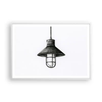 Plakat w czarnej ramie - Rysunek wiszącej lampy w stylu retro na białym tle - 100x70cm - Jak przed laty… - Nowoczesna dekoracja ścienna do salonu i sypialni ARTTOR