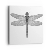 Zegar ścienny - Szczegółowa ilustracja ważki w czerni na białym tle - 30x30cm - Precyzja natury - Nowoczesna dekoracja ścienna do salonu, kuchni i sypialni ARTTOR