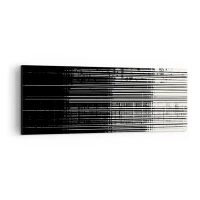 Obraz na płótnie - Abstrakcyjna kompozycja linii w kontrastowej czerni i bieli - 140x50cm - Fale i drgania - Nowoczesna dekoracja ścienna do salonu i sypialni ARTTOR