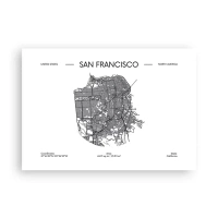 Obraz na płótnie - Mapa San Francisco w czarno-białym stylu minimalistycznym - 100x70cm - Anatomia San Francisco - Nowoczesna dekoracja ścienna do salonu, kuchni i sypialni ARTTOR