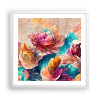 Plakat w białej ramie - Barwny przepych bukietu - 50x50 cm