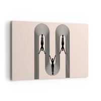 Obraz na płótnie - Sylwetki w geometrycznym stylu na beżowym tle - 120x80cm - Do góry nogami - Nowoczesna dekoracja ścienna do salonu, kuchni i sypialni ARTTOR