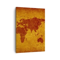 Obraz na płótnie - Mapa świata w ciepłych odcieniach na teksturowanym tle - 50x70cm - Zaproszenie do podróży - Nowoczesna dekoracja ścienna do salonu, kuchni i sypialni ARTTOR
