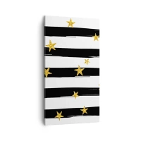 Obraz na płótnie - Czarno-białe pasy z złotymi gwiazdami na tle - 50x70cm - Wszyscy urodziliśmy się pod szczęśliwą gwiazdą - Nowoczesna dekoracja ścienna do salonu, kuchni i sypialni ARTTOR
