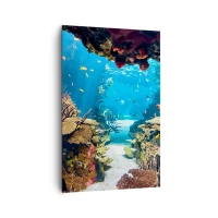 Obraz na płótnie - Podwodny świat z rafą koralową i rybami - 80x120cm - Nawet ci się nie śniło - Nowoczesna dekoracja ścienna do salonu i sypialni ARTTOR