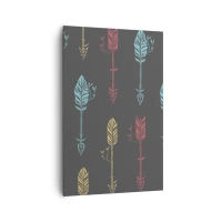 Obraz na płótnie - Stylizowany wzór strzał w pastelowych kolorach na ciemnym tle - 80x120cm - W ordynku - Nowoczesna dekoracja ścienna do salonu i sypialni ARTTOR