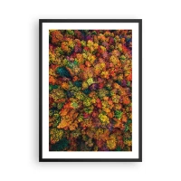 Plakat w czarnej ramie - Kolorowy las widziany z lotu ptaka w jesiennej palecie barw - 50x70cm - Bukiet jesiennych drzew - Nowoczesna dekoracja ścienna do salonu i sypialni ARTTOR