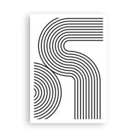 Obraz na płótnie - Abstrakcyjny obraz z czarnymi liniami tworzącymi geometryczne wzory na białym tle - 70x100cm - Na zakręcie - Nowoczesna dekoracja ścienna do salonu i sypialni ARTTOR