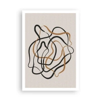 Obraz na płótnie - Splątane linie w czerni i złocie na jasnym tle - 70x100cm - Wszystko się pokręciło - Nowoczesna dekoracja ścienna do salonu i sypialni ARTTOR