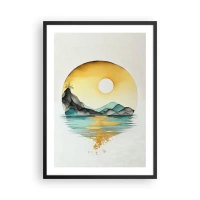 Plakat w czarnej ramie - Minimalistyczny krajobraz gór nad wodą w złotych barwach - 50x70cm - W kręgu piękna - Nowoczesna dekoracja ścienna do salonu i sypialni ARTTOR