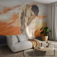 Fototapeta Premium Canvas - Mężczyzna w zamyśleniu na tle zachodu słońca - 100x70cm - Zatopiony w sobie - Nowoczesna dekoracja ścienna do salonu i sypialni ARTTOR