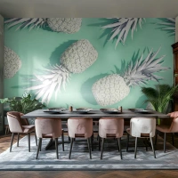 Fototapeta Premium Canvas - Białe ananasy na pastelowym tle w stylu minimalistycznym - 100x70cm - świetnie komponują się z miętą - Nowoczesna dekoracja ścienna do salonu i sypialni ARTTOR
