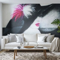 Fototapeta Premium Canvas - Stylowa kobieta w kapeluszu z piórami - 100x70cm - Zawsze tajemnica - Nowoczesna dekoracja ścienna do salonu i sypialni ARTTOR