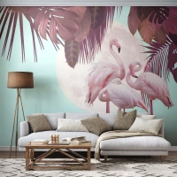 Fototapeta Premium Canvas - Trzy ptasie gracje - Flamingi, Ptaki, Natura - 200x140 cm