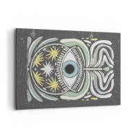 Obraz na płótnie - Symboliczne oko w otoczeniu abstrakcyjnych wzorów - 100x70cm - Plemienne rytuały - Nowoczesna dekoracja ścienna do salonu, kuchni i sypialni ARTTOR