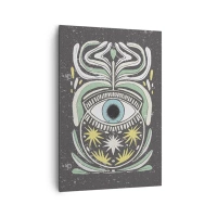 Obraz na płótnie - Symboliczne oko w otoczeniu abstrakcyjnych wzorów - 70x100cm - Plemienne rytuały - Nowoczesna dekoracja ścienna do salonu i sypialni ARTTOR
