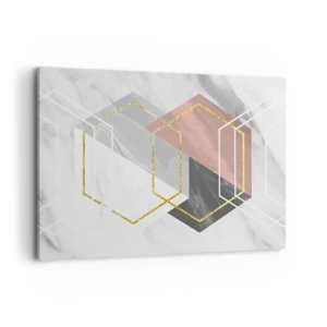 Obraz na płótnie - Geometryczne figury z akcentami złota i marmuru - 120x80cm - Kompozycja łańcuchowa - Nowoczesna dekoracja ścienna do salonu, kuchni i sypialni ARTTOR