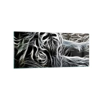 Obraz na szkle - Czarno-biały wzór z liśćmi bananowca na jasnym tle - 120x50cm - Pierzasta zawierucha - Nowoczesna dekoracja ścienna do salonu i sypialni ARTTOR