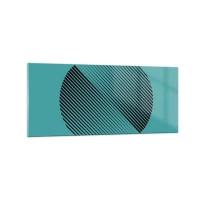 Obraz na szkle - Minimalistyczne koło z liniami na turkusowym tle - 120x50cm - Koło – geometryczna wariacja - Nowoczesna dekoracja ścienna do salonu i sypialni ARTTOR