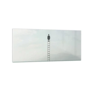 Obraz na szkle - Mężczyzna na drabinie wznoszącej się w niebo - 120x50cm - Wznieś się ponadto - Nowoczesna dekoracja ścienna do salonu i sypialni ARTTOR
