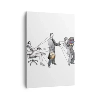 Obraz na płótnie - Symboliczna ilustracja hierarchii pracy z przełożonym sterującym podwładnymi jak marionetkami - 50x70cm - Każdy swego pana ma - Nowoczesna dekoracja ścienna do salonu, kuchni i sypialni ARTTOR